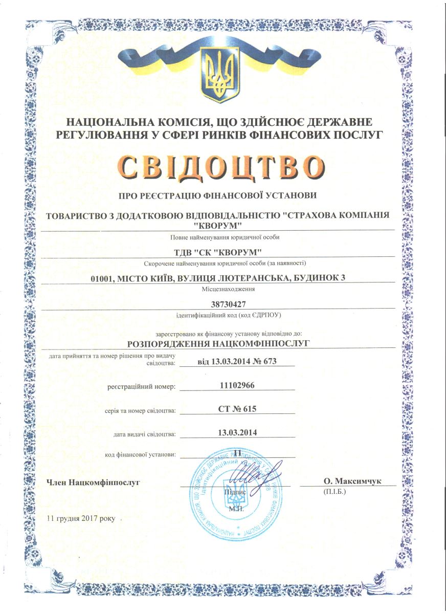 Свідоцтво про реєстрацію фінансової установи: подивитись